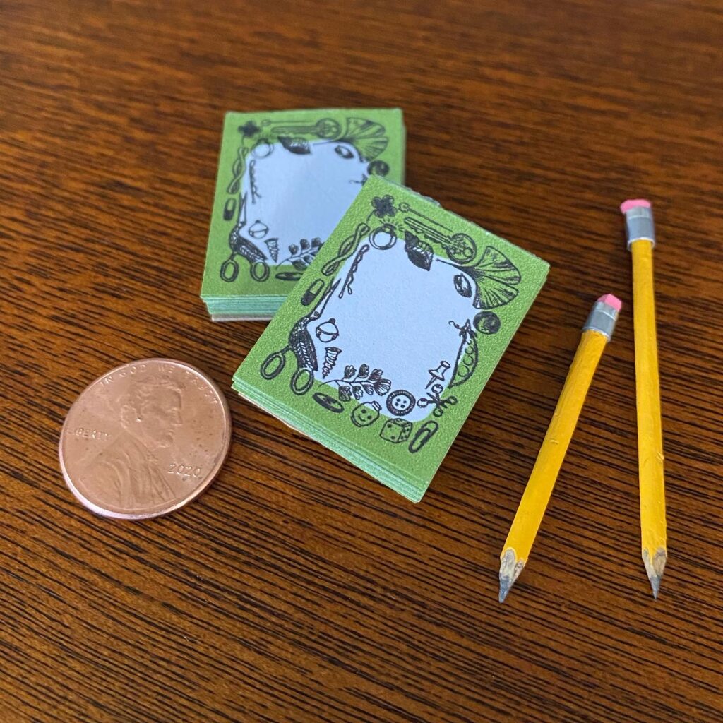 Like the fake tiny pencils I made from toothpicks for April Fool’s Day a year ago, pictured above, I used aluminum tape (for the ferrule) and cut a miniature eraser.