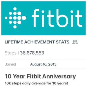 I’ve been looking forward to it for months since I realized that August 2023 would be my 10 year fitbit anniversary. I have been doing the math and crunching my stats to make sure that I reached my goal of 10k steps average over the 10 years.