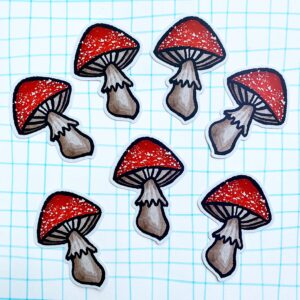 These adorable mushroom vinyl stickers are diecut and weatherproof, and available in my shop here.