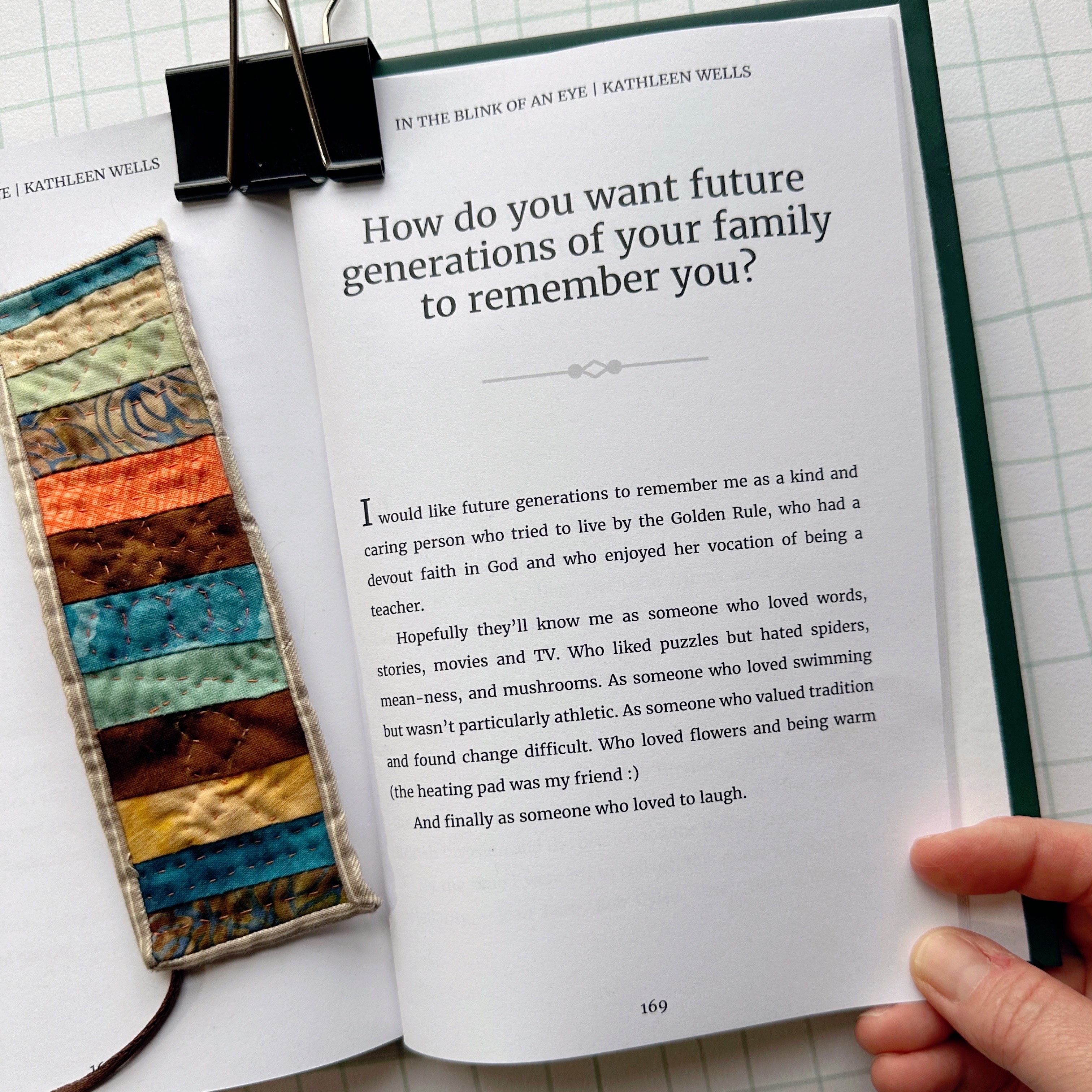 One note, she did do a similar book before, with not as many prompts that she transcribed into a lined notebook. I have that and we did take some of the stories out of there to transfer to her published book. The opening page of that stays I gave her a book with prompts in 2010.